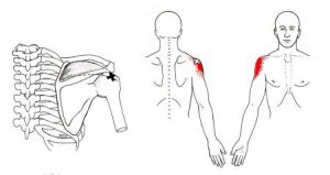 Bolest ze spoušťového bodu se objevuje zejména na zadní straně ramene a paže. Občasně zasáhne i zadní stranu předloktí. Bolest se projeví při práci s rukama nad horizontálou.